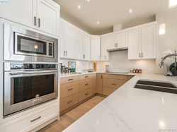BRAND NEW & MOVE IN READY! Beautifully finished Oceanview SE facing PENTHOUSE! Quality finished, 2BD/2BA home, features spacious living, gourmet kitchen with top of the line appliances, spa-styled ensuite and incredible natural light showcased in the 10.5ft ceilings and numerous skylights! An open concept layout utilizes every square foot to maximize space and to make room for everyday living including a fantastic den and incredible in-suite storage and laundry room. Cozy up to the gas FP with feature tile and mantle and watch the west coast in all it's glory! Expansive wrap-around sunny balcony with 209sf of outdoor living space, is complete with Travertine pavers and topless railings to compliment the breathtaking views of Bazan Bay. This Penthouse condo has been finished to the highest level and includes New Home Warranty and secure parking. Conveniently located 2 blocks from Sidney by the Sea’s bustling Downtown – your choices are endless in this world class seaside community.